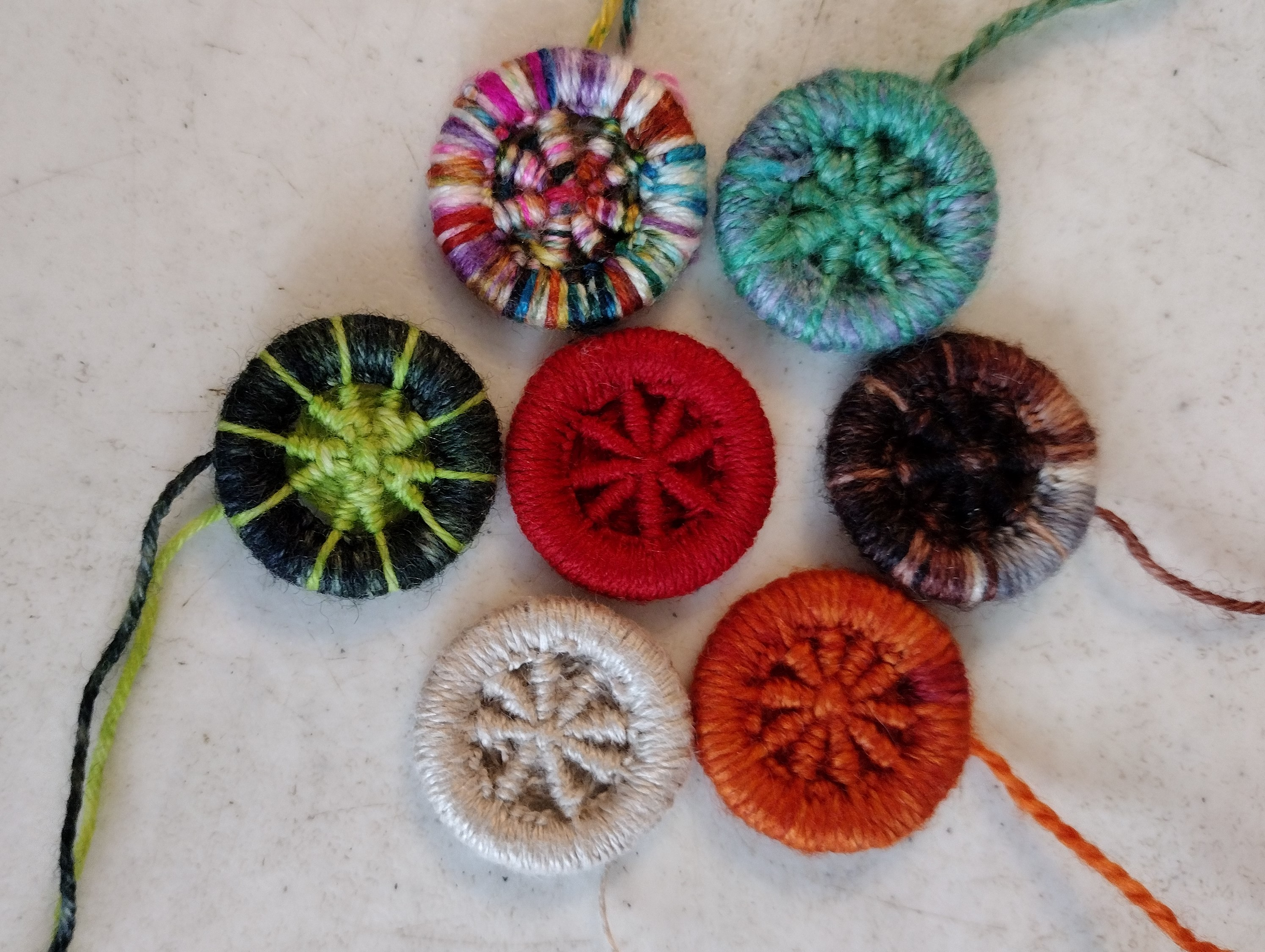 Learn to weave Dorset buttons and you just might find yourself wanting to swap out the buttons on your ready to wear! We will each make our own button.